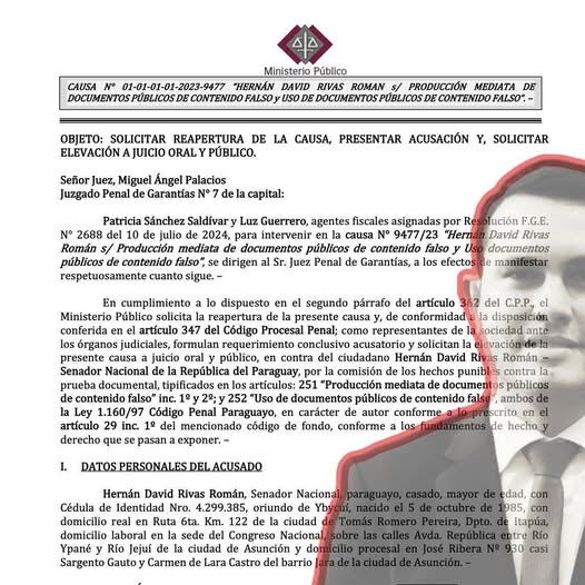La investigación del Ministerio Público – Fiscalía General de la República del Paraguay ha expuesto una trama de contradicciones que sitúa al senador cartista Hernán Rivas en el centro de un escándalo por presunta falsificación de contenido de su título de abogado.
