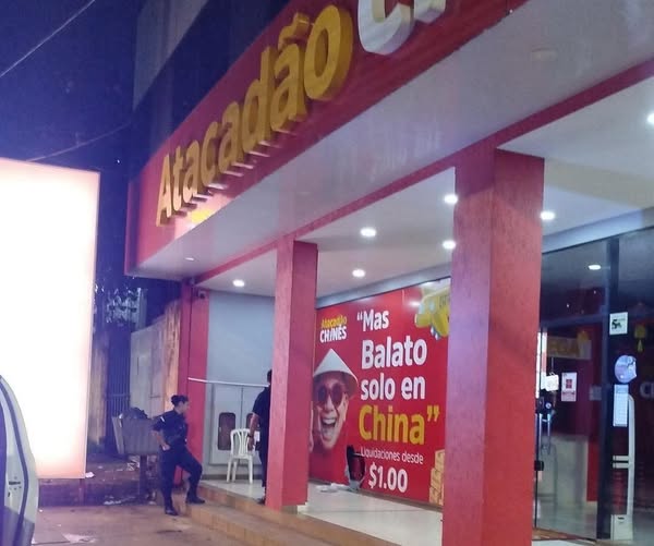Desconocidos atacaron el local “Atacadao Chinese”, ubicado sobre Monseñor Rodríguez y Herminio Giménez, donde rompieron el blindex frontal, dejando una abertura visible en la estructura.